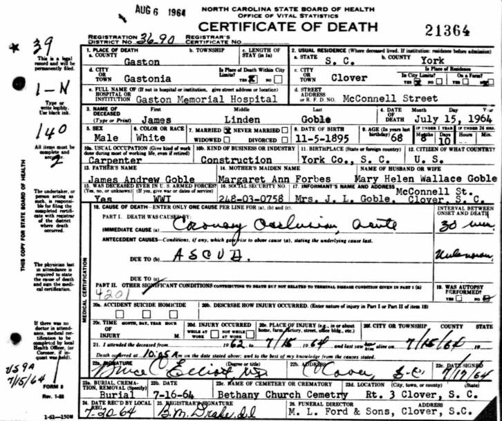1875 and his death date as 15 Jul 1964. He died as a result of a
