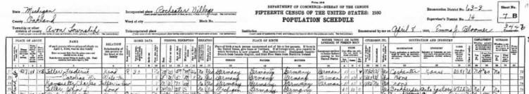 1900 and 1910 Macomb County, Michigan, Census, we know that they