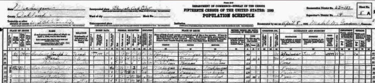 By 1930, Joseph and Clara had moved to Royal Oak City, Oakland