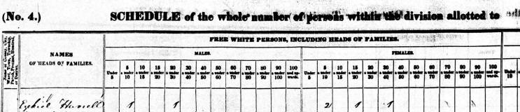 The 1840 Census shows the Ezekiel Perry Harrell family living in