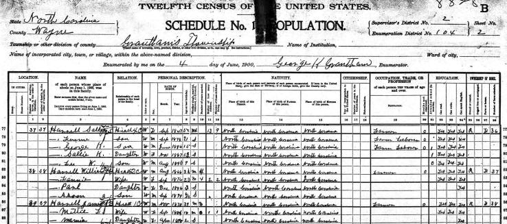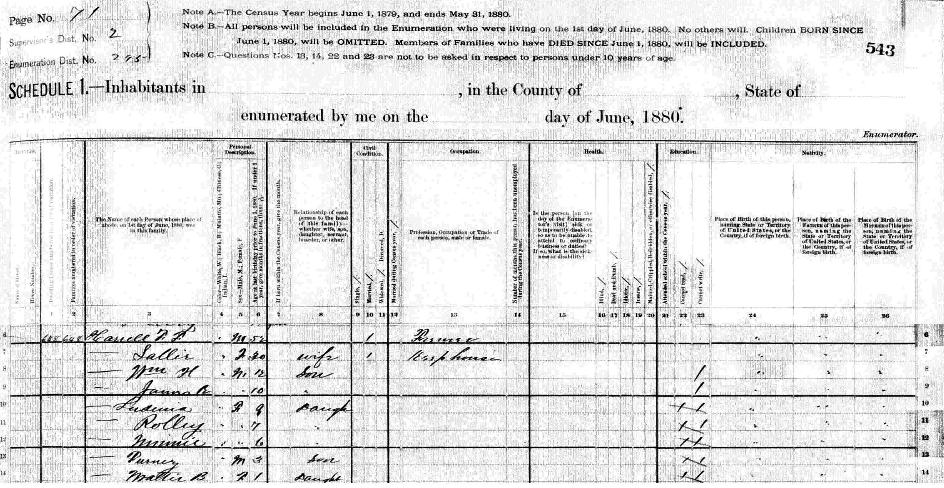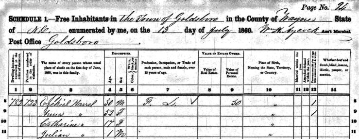 The 1850 Census shows the Ezekiel Perry Harrell family still