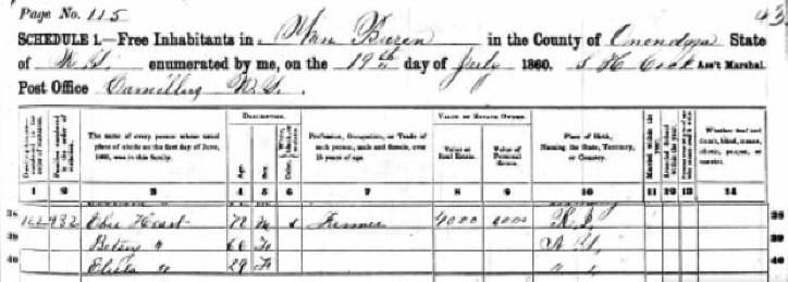The 1860 Census shows Eber Jr. and Elizabeth "Betsy"