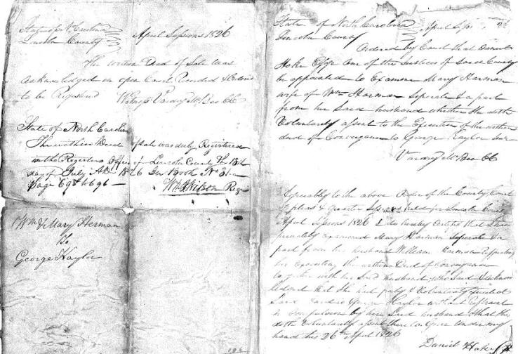 Herman wife of Wm Harmon(Hermon) Separate & apart from