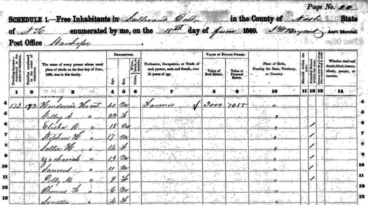 The 1850 Census shows Henderson and Rebecca Hocutt living in