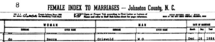 Rebecca "Becca" Hocutt Griswold died 07 May 1952 in Zebulon,