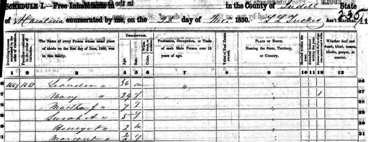 In 1850, Leander and Mary were living in Iredell County, NC,
