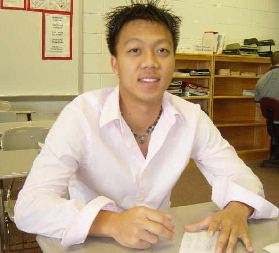 8th grade student, Austin Vang - Austin shows Curtis photos of his wife