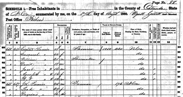 Jacob E. Lanier, b. 1843, d. 26 Sep 1863 |