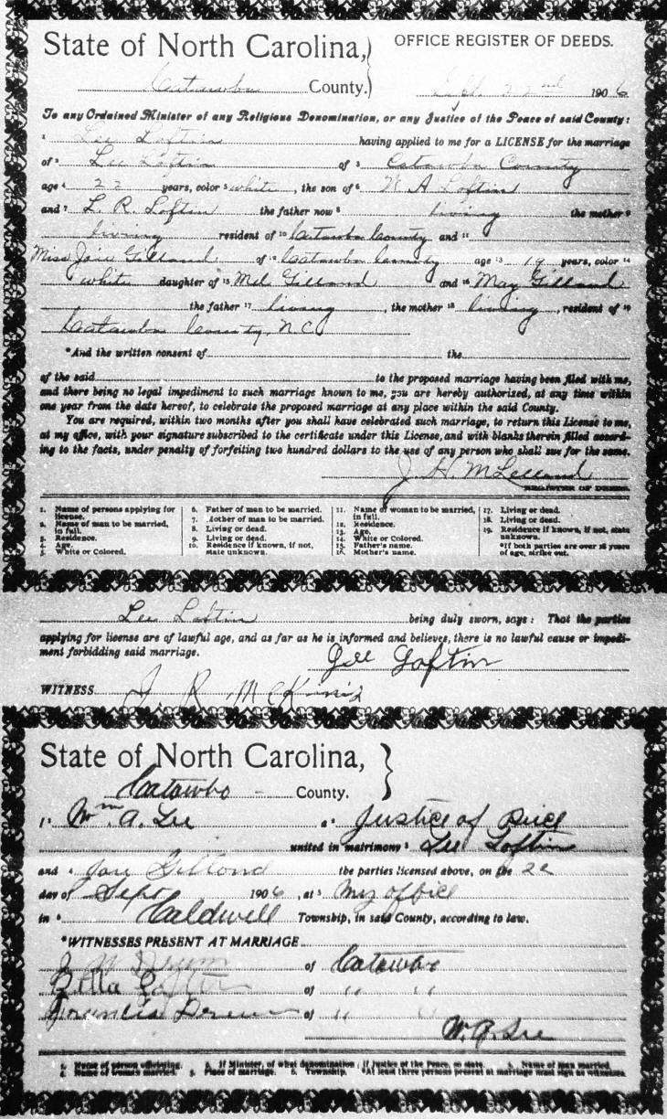 Arthur Lee Loftin & Alice Josephine Gilleland's Marriage