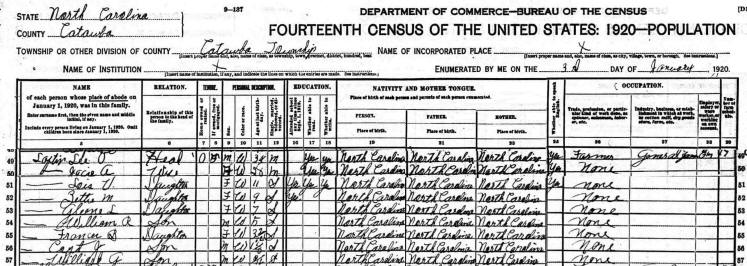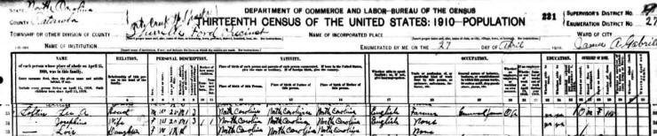 The 1910 Catawba County Census shows Lee, Josephine and Lois