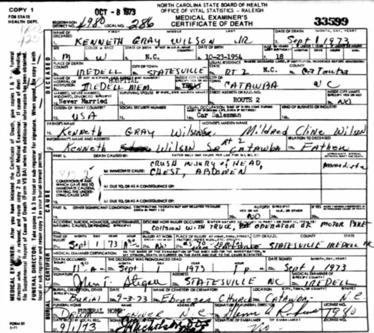 1954, Catawba Co, NC, d. 01 Sep 1973, Statesville, Iredell Co,