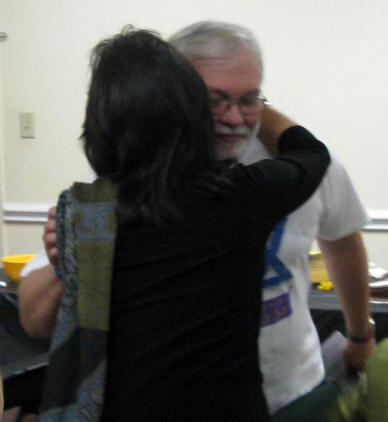 Curtis gets a hug from Cathy Hargett while Angel Pittman signs a