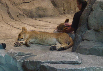look at the lion cubs in the animal exhibit there |