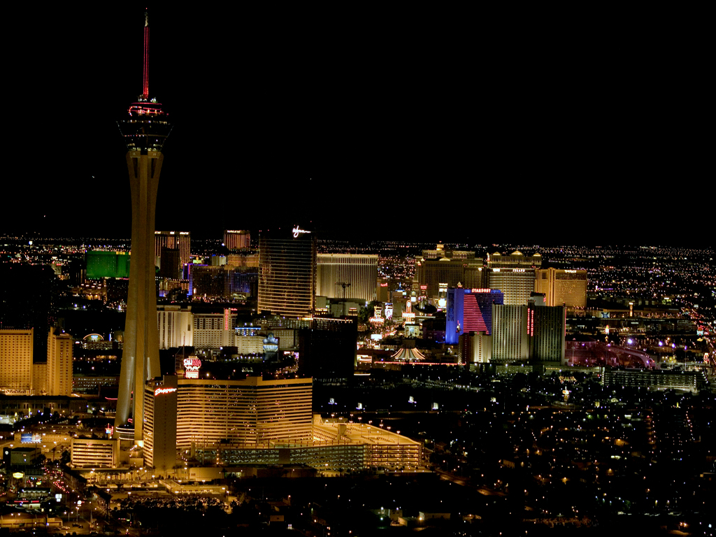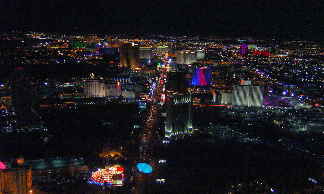 The Stratosphere in the distance with Mandalay Bay, Luxor,