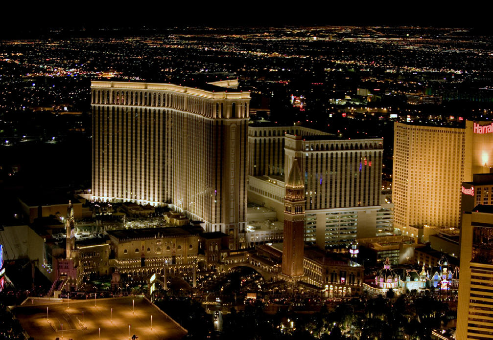 A night time shot of the Venetian |