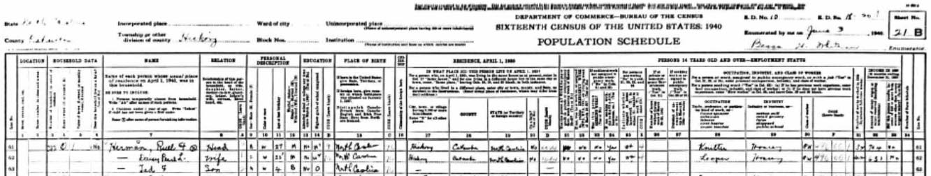 The 1940 Census shows Ruel and Daisy Pearl living in Hickory,