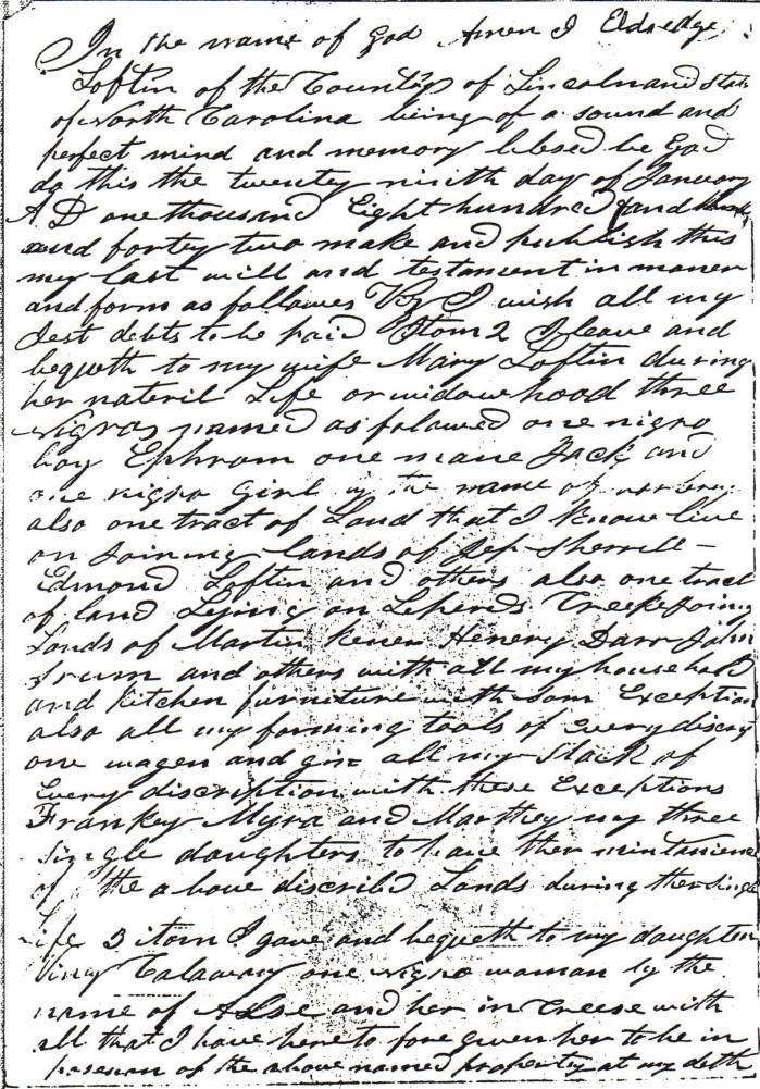 Loftin, moved to Lincoln County prior to 1850. They had formerly