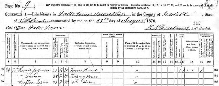 Jefferson, but the 1880 Census shows that an aunt, Cynthia