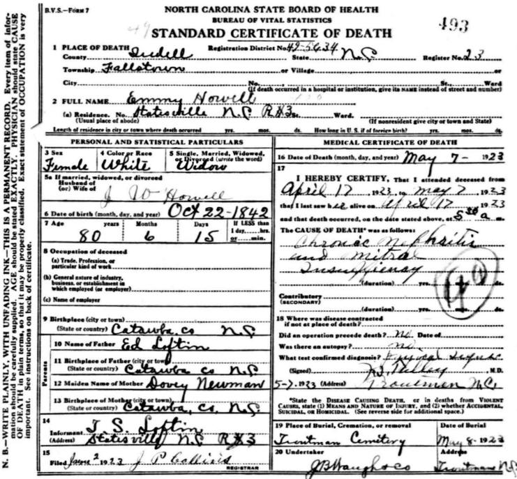and Dovey Newman. Emmy was born 22 Oct 1842 in Catawba