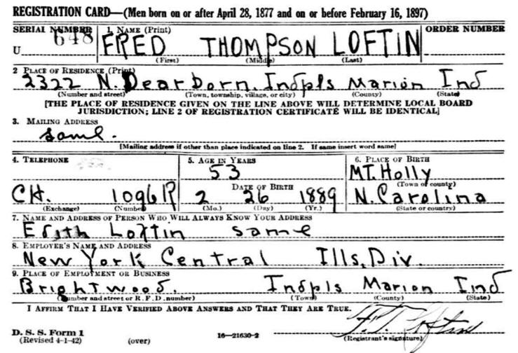 1942 WWII Draft Registration Card |