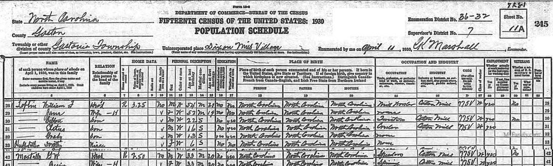 Loftin home were his children: Gradie/Grady (age 3 6/12