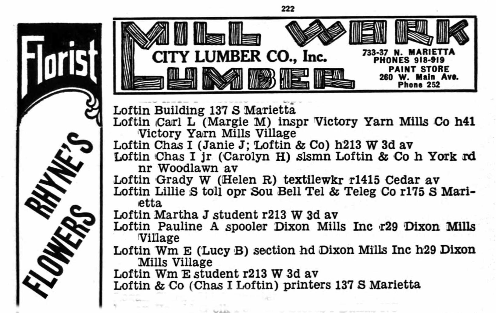Grady was listed as a textiles worker at Burl Industries. Grady