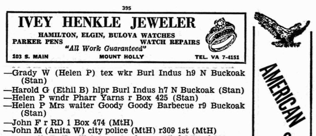 Grady and Helen living at 9 N. Buck Oak, Stanley, NC.