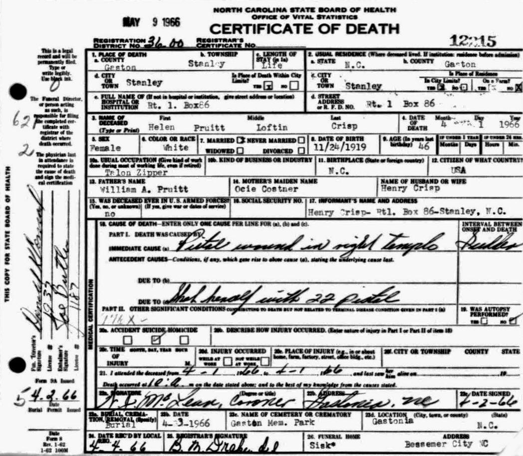 Apr 1966 in Stanley, Gaston County, NC, at the age of 46 and as