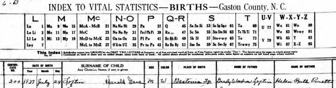 finished 6th grade. Grady's son Harold Gene Loftin was listed on