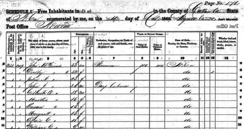 1860 Catawba County Census |