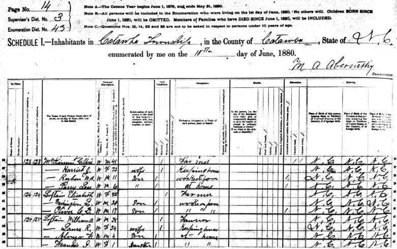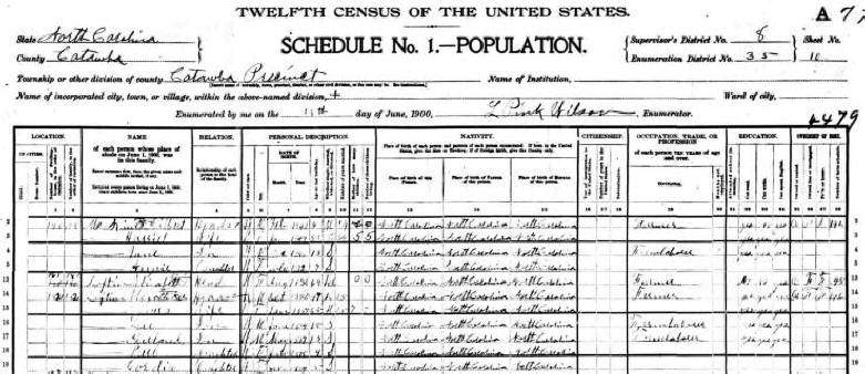 The 1910 Catawba County Census reveals that
