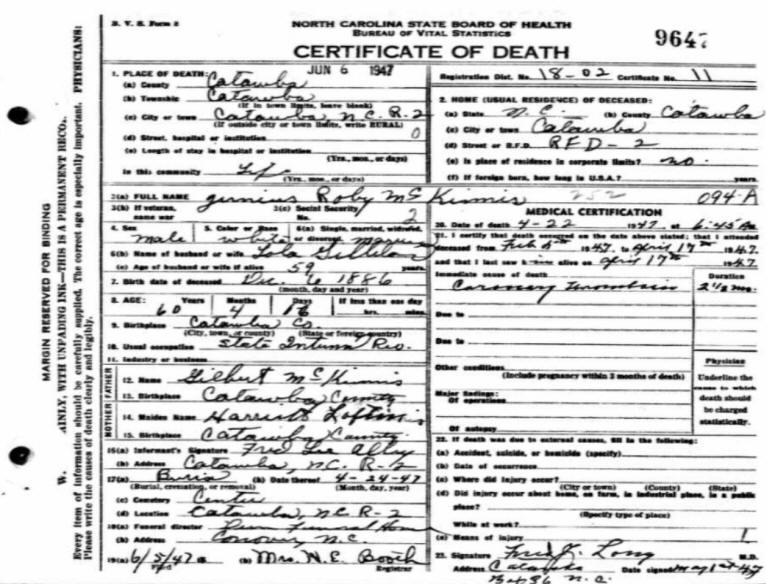 13 Dec 1908, Catawba County, NC |