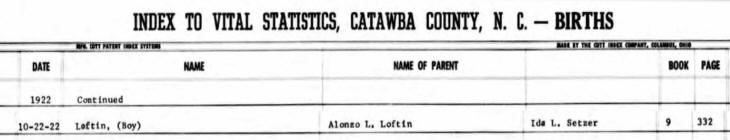 The Index to Vital Statistics of Births in Catawba County, NC,