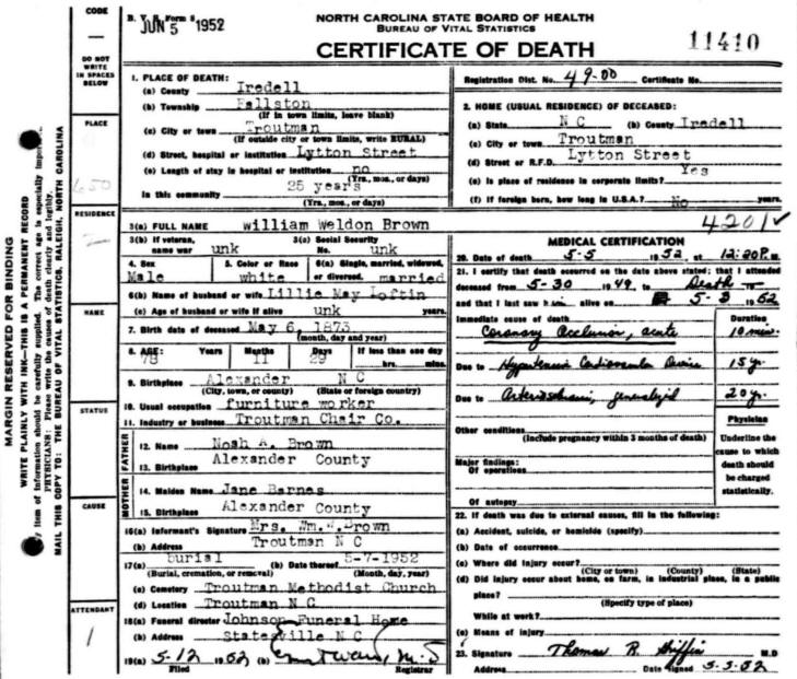Brown's Death Certificate |