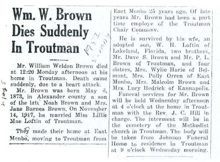 a heart attack. He was buried at the Troutman Methodist