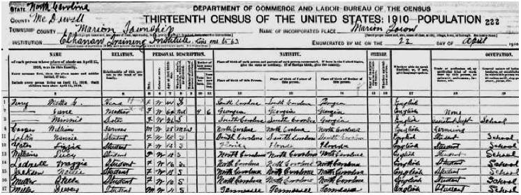 age 15, is listed on line 11 on the 1910 McDowall County Census