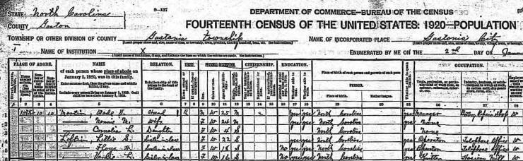 1920 Gastonia City Census, Wade & Nannie were renting a house