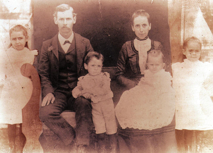 (Left to Right) Nannie, Alonzo, Roy, Cornelia holding Floye and
