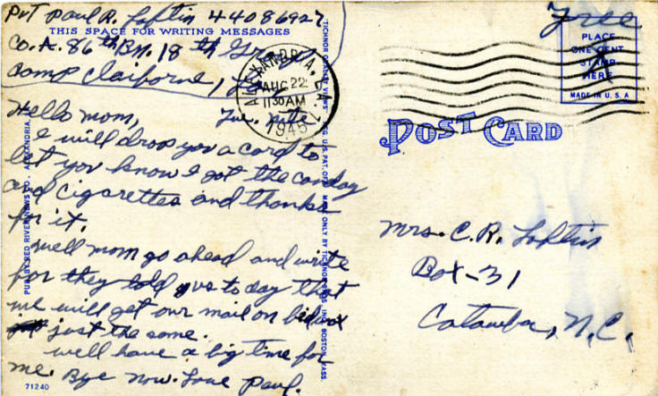 Paul was stationed at Camp Claiborne, Louisiana. Camp