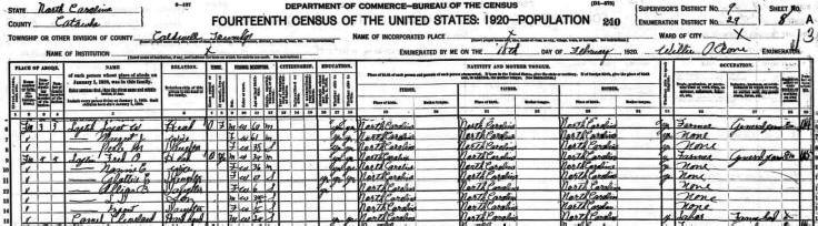 According to the 1920 Catawba County Census, Lafayatte, Margaret