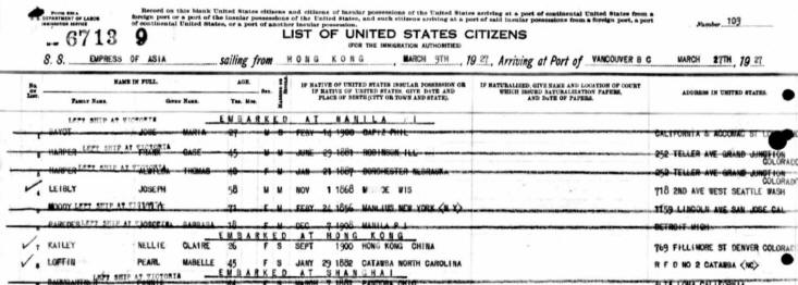 According to the 1927 Passenger & Crew Lists for Seattle,