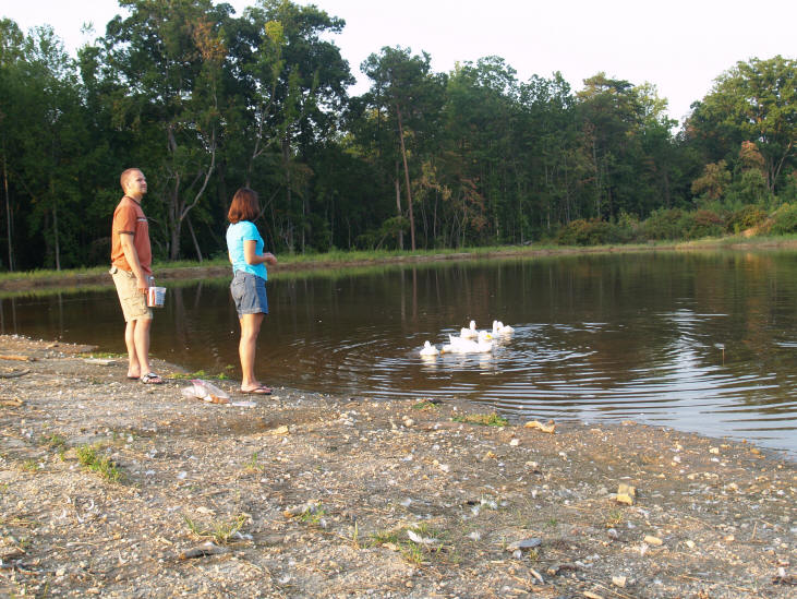 Feeding the ducks at the pond - a great place to fish & picnic |