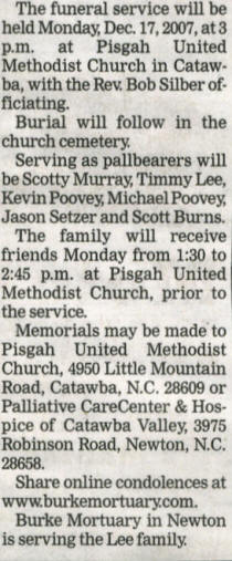 Died: 15 Dec 2007, Catawba County, NC |