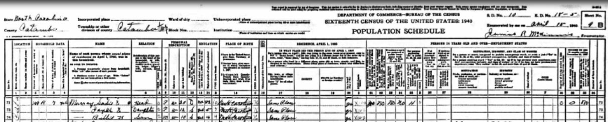 1940 Catawba County Census |