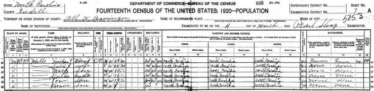 By 1920, William and Sarah Jane "Sallie" were living on the