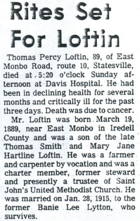 Thomas Percy Loftin died 03 Sep 1978 and Banie died 30 Aug 1981