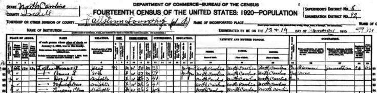 Iredell County Census of 1900, where the family was living in Fallstown Township. The census lists Thomas