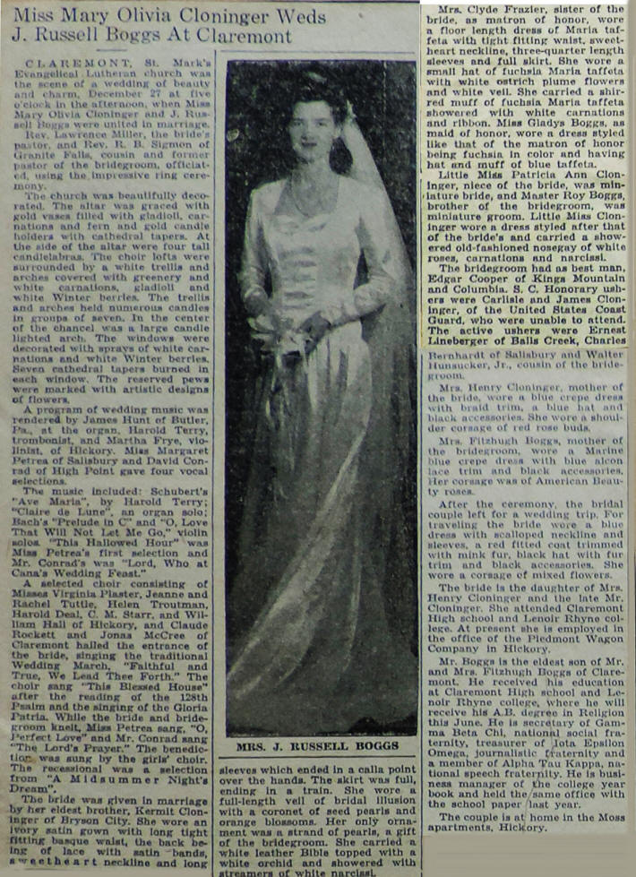 James Russell Boggs is married to Mary Olivia Cloninger of