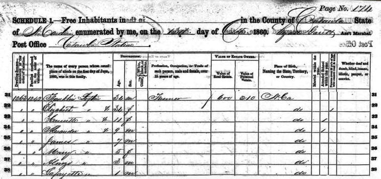 According to the 1860 Catawba County, NC, Census, Lafayette was