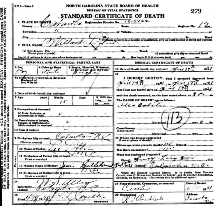 Willard died 17 Apr 1921 at the age of 1 year and almost 4